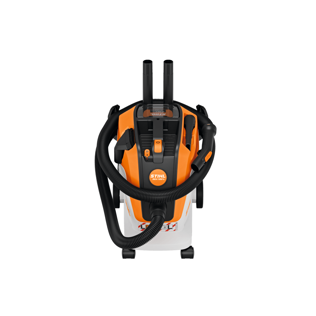 O STIHL SEA 100 L é o aspirador a bateria ideal para quem exige alto desempenho, versatilidade e mobilidade. Projetado para aspiração de sólidos e líquidos, ele atende desde tarefas domésticas até demandas mais intensas em oficinas e serviços automotivos, sem depender de tomadas ou cabos.<br/> <br/>Equipado com baterias de íons de lítio do sistema STIHL AP, o SEA 100 L oferece excelente autonomia e potência de sucção comparável a modelos com fio. Com certificação de classe L, é indicado para a remoção de poeiras comuns como pó doméstico, resíduos de madeira macia, gesso, cal e mica – materiais não perigosos à saúde.<br/> <br/>Seletor de potência com dois modos:<br/> <br/>Modo Econômico: ideal para limpezas leves e maior duração da bateria<br/>Modo Potente: para sujeiras mais difíceis e superfícies desafiadoras<br/> <br/>Seu design ergonômico inclui um fácil acesso ao Botão liga/desliga e sua mangueira de 2,4 metros com rotação livre possui tratamento antiestático, reduzindo o acúmulo de carga elétrica e aumentando a segurança. O tubo de sucção em duas partes facilita o alcance de áreas estreitas e de difícil acesso. Além disso, o SEA 100 L é resistente a respingos d’água, o que o torna ideal para ambientes variados.<br/> <br/>Todos os acessórios são armazenados no próprio corpo do equipamento, garantindo organização e agilidade na troca de funções.<br/><br/><strong style="font-size:12px">*Carregador e bateria são vendidos separadamente e não acompanham o produto.</strong>