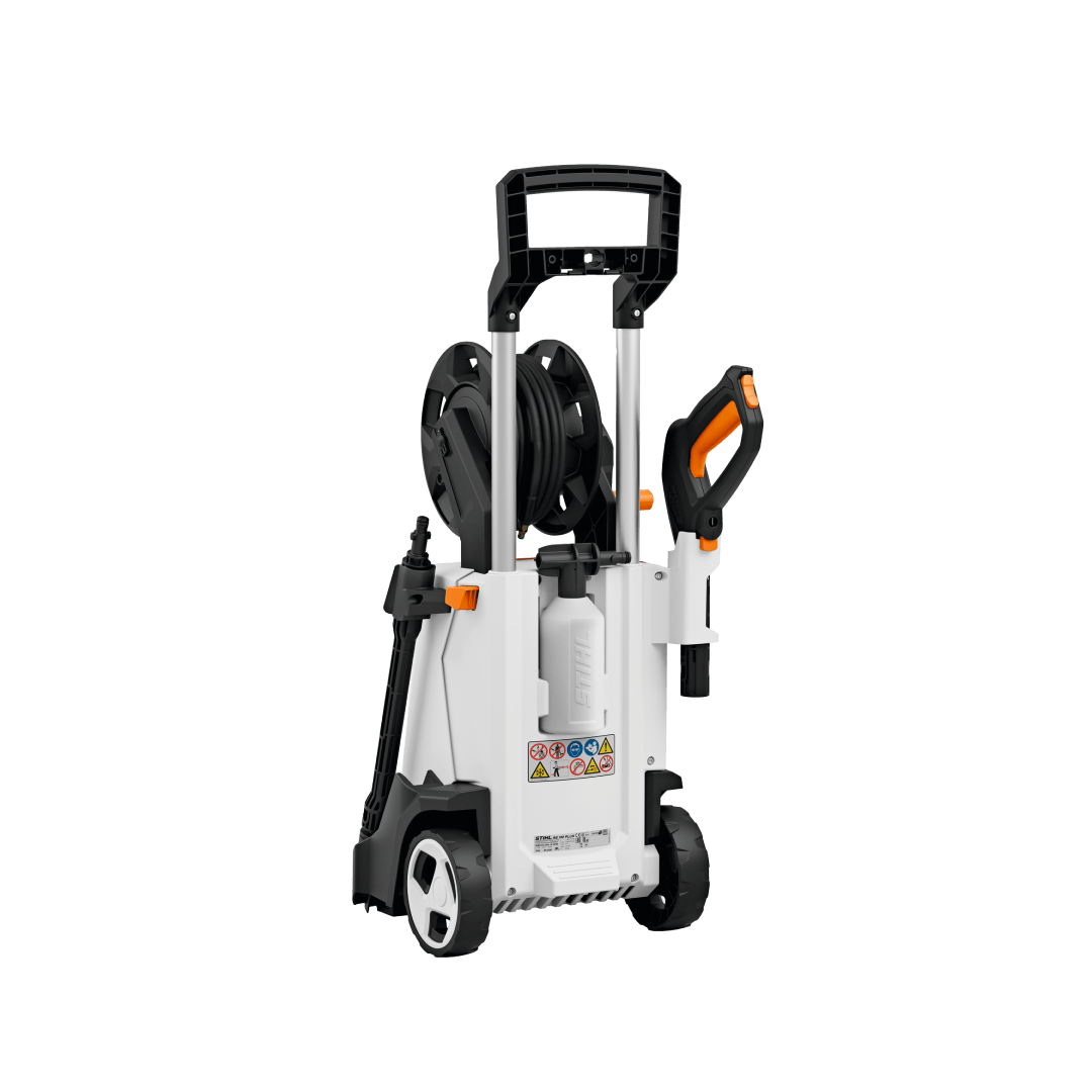 A lavadora de alta pressão RE 110 Plus é a solução ideal para quem busca eficiência e praticidade na limpeza doméstica. Leve e compacta, este equipamento é perfeito para a limpeza de pátios, jardins, escadas, calçadas, veículos e muito mais. Com uma mangueira de alta pressão de 8 metros e conexão rápida, você terá maior alcance e facilidade de uso. Para garantir uma limpeza completa e eficaz, a RE 110 Plus vem equipada com três tipos de bicos: o Bico Leque, ideal para paredes, calçadas e veículos com sujeira superficial; o Bico Turbo, perfeito para limpezas mais profundas e encrustadas, onde é necessária maior força; e o Bico de Detergente, que facilita a aplicação de agentes de limpeza, tornando a remoção de sujeiras mais simples. Além disso, a RE 110 Plus possui um espaço de armazenamento integrado para os bicos, cabo elétrico e lança de jatear, além de um suporte giratório para a mangueira, otimizando o espaço e mantendo tudo organizado. <br/><br/>Para ampliar ainda mais a versatilidade da sua lavadora de alta pressão, diversos acessórios estão disponíveis em nossa categoria de <a href="https://loja.stihl.com.br/acessorios/para-lavadoras" target="_blank">acessórios para lavadoras</a>. Entre os itens compatíveis, você encontra bicos espuma, mangueiras de extensão e escovas especiais, ideais para diferentes tipos de limpeza e superfícies.
